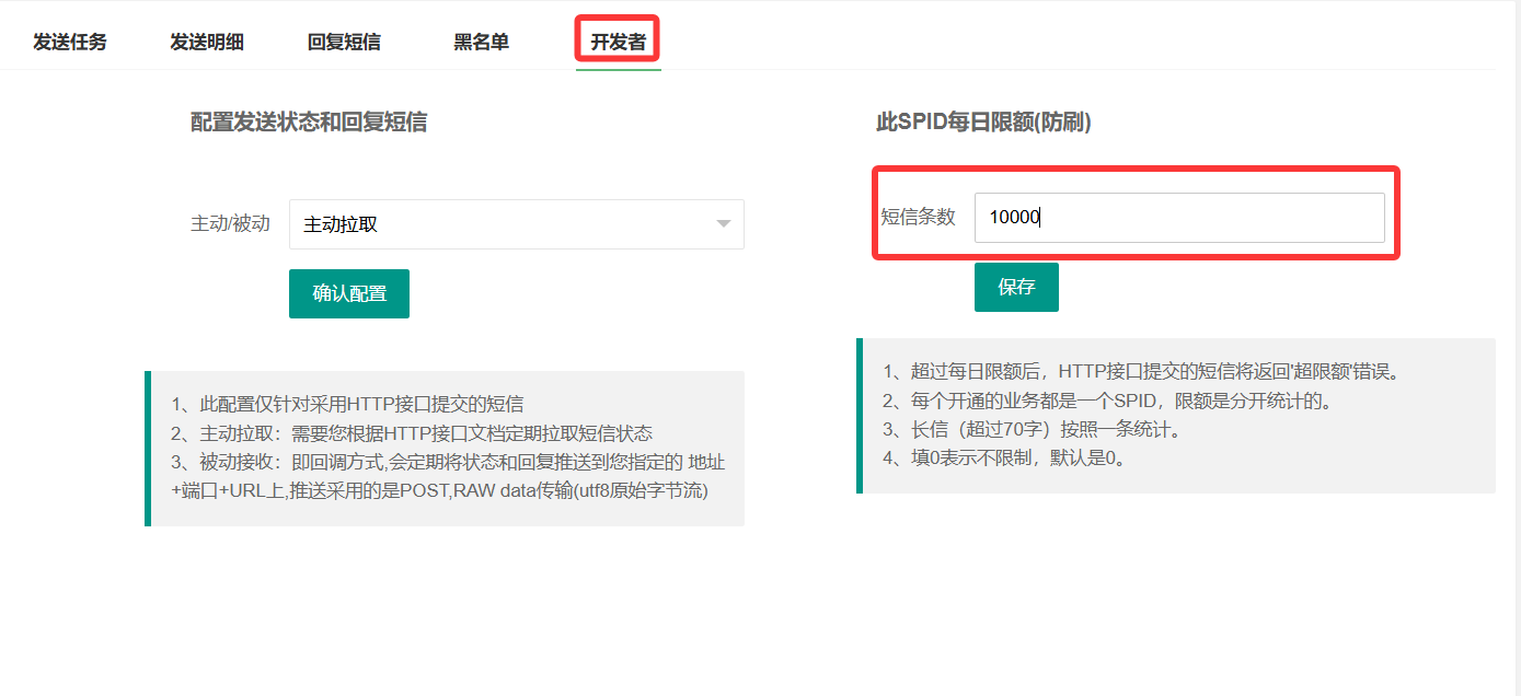 限制每天发送短信最大条数。